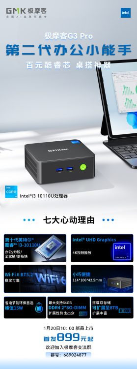 设计携手德国红点奖获得者倾心打造,独创 C 的秘密量体工艺美学,打破迷你电脑设计常态,全新 C 框五金 CNC 喷砂氧化工艺加持,时...