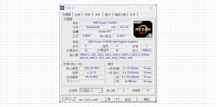 极摩客M6搭载的R5 6600H标压CPU,6核12线程,更新的Zen3+架构,主频3.3GHz,最大睿频4.5GHz。