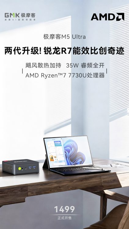 当桌面空间被臃肿主机占据,当性能与便携难以兼得,极摩客带来两代升级的颠覆性产品——M5 Ultra正式开售!不到0.8L的掌心巨核,塞进AMD锐龙7 7730U八核处理器,双风扇散热加持下实现35W满血性能释放,1499元起的首发价,重新定义千元级迷你主机的性价比天花板。