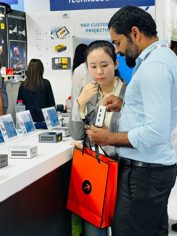 展会期间,极摩客展位凭借硬核的产品实力与沉浸式的体验设计,成为 H26 展厅的 “热门打卡点”。来自阿联酋、沙特、埃及、土耳其等中东及周边国家的企业代表、经销商、科技媒体纷纷驻足交流,其中超过 50 家企业表达了合作意向,3 家中东本地大型零售商现场签订初步合作协议,计划将极摩客产品引入本地线下门店。