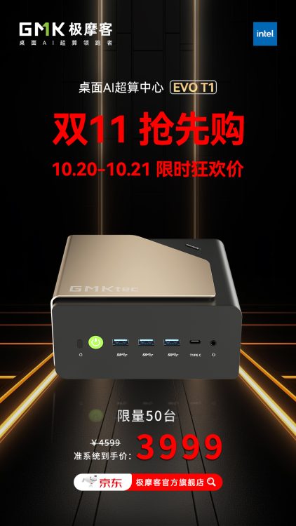 双11抢先购!极摩客G10准系统699元、EVO-T1准系统3999元,各限量100台!
