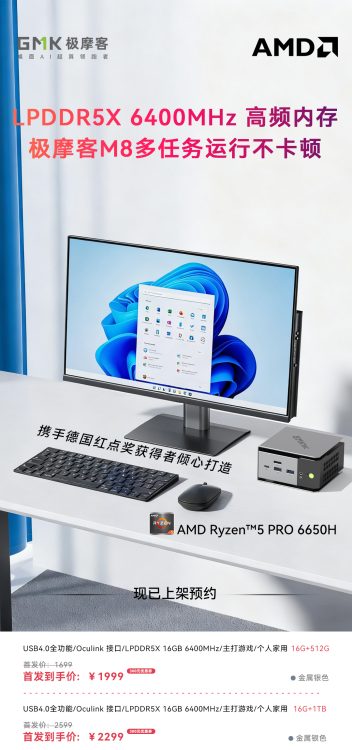 极摩客M8:LPDDR5X 6400MHz高频内存!多任务运行不卡顿