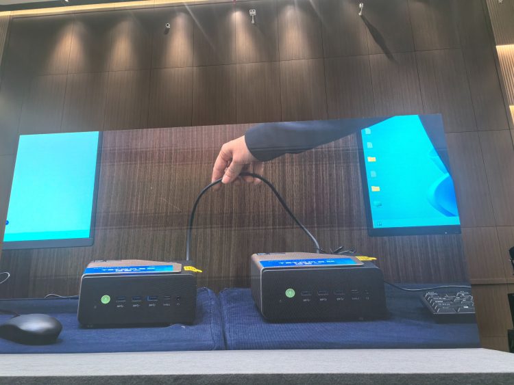 本次展会,实机体验:英特尔官方正在使用极摩客EVO T1 双机雷电并联 进行演示: