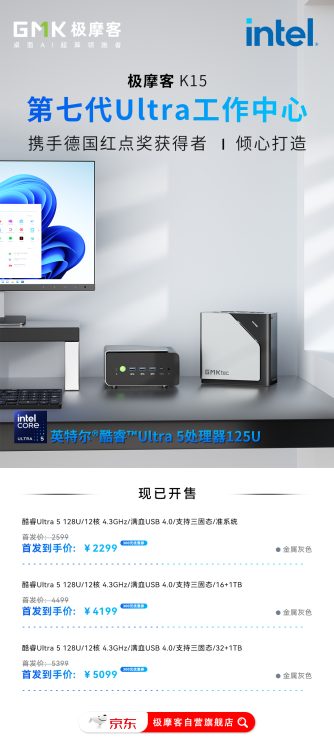 极摩客 K15 作为第七代 Ultra 工作中心,搭载英特尔酷睿 Ultra 5 125U 处理器,以 Intel 4 工艺与 12 核 14 线程架构实现 110W + 鲁大师跑分,15W-35W 三档功耗调节兼顾性能与节能,集成 21TOPS AI 算力 NPU 与 4 核 Xe 显卡,轻松应对 AI 绘图、视频剪辑、4K/8K 播放及轻度网游。机身采用红点奖设计美学,CNC 铝合金材质仅 910g 重,后置 Oculink 接口可外接英伟达 50/40 系显卡秒变 3A 游戏站,3 个 PCIe 4.0×4 M.2 插槽(最高支持 24TB 存储)与双 DDR5 内存插槽(最高 96GB)满足扩展需求,双 2.5G 有线网卡 + WiFi 6E 保障高速网络,丰富接口支持 4 屏 4K 同步输出,2299 元起的准系统售价,一站式适配专业办公、创意创作、居家娱乐等全场景。