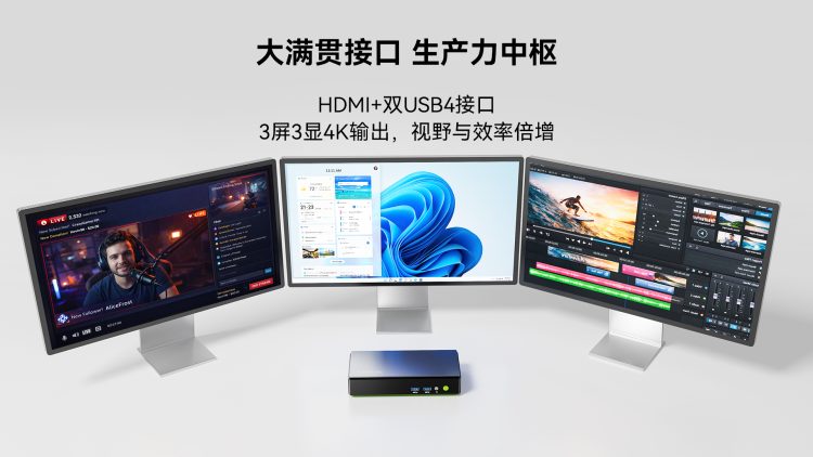 - 视野,是效率的前提:借助双满血USB4,轻松连接三台4K显示器。左边放代码,中间跑模型,右边查文档——多线程工作,终于可以一目了然。