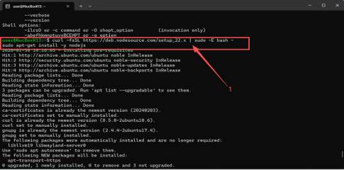 3.在WSL2中安装Node.js 22+curl -fsSL https://deb.nodesource.com/setup_22.x | sudo -E bash -sudo apt-get install -y nodejs –>等待下载完成