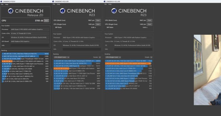 CINEBENCH R20多核得分3705,R23单核、多核得分分别为1482pts和9867pts,对于日常办公是一点压力也没有,偶尔玩玩英雄联盟、CF也是可以的,有着典型的U系列的性能和静谧均衡的特点。