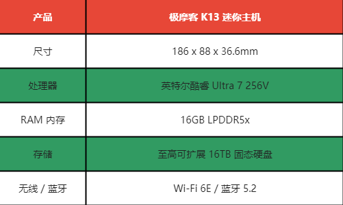 极摩客于近期推出了 K13 迷你主机,这是一款相对少见的英特尔酷睿 Ultra 200V “Lunar Lake” 平台迷你主机产品,其搭载 Ultra 7 256V 处理器,集成封装 16GB RAM。