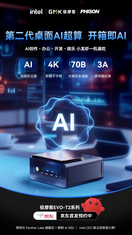 定档官宣!极摩客 EVO‑T2 系列 3 月 12 日晚 7 点,极摩客京东自营旗舰店店正式上市预约! 180TOPS 算力狂飙,GMKtec Claw 开箱即用,第二代桌面 AI 超算旗舰,准时开抢!