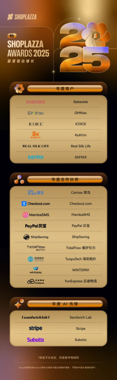 【荣耀加冕】极摩客斩获SHOPLAZZA AWARDS 2025年度金奖,以实力诠释科创力量