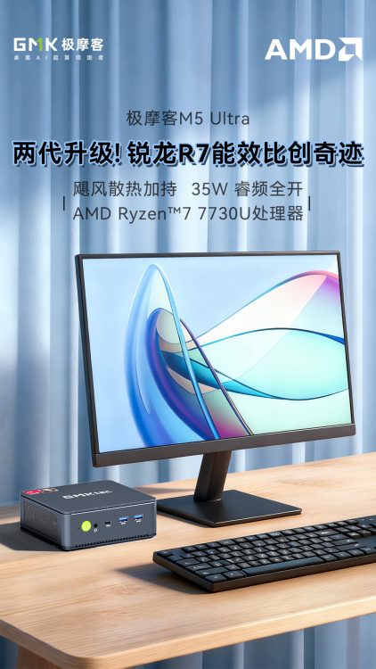 [playlist type="video" ids="7587"] 极摩客 M5 Ultra搭载 AMD 锐龙 7 7730U 处理器,基于 Zen 3 架构,拥有 8 核 16 线程,最大...