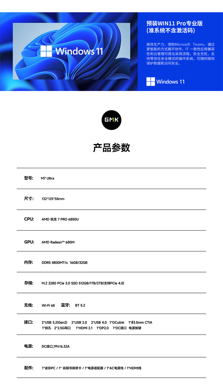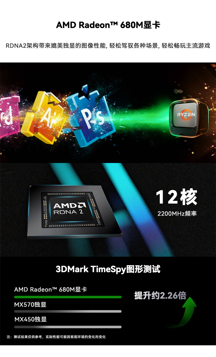 GPU:AMD Radeon™ 680M;12核2200MHz显卡频率