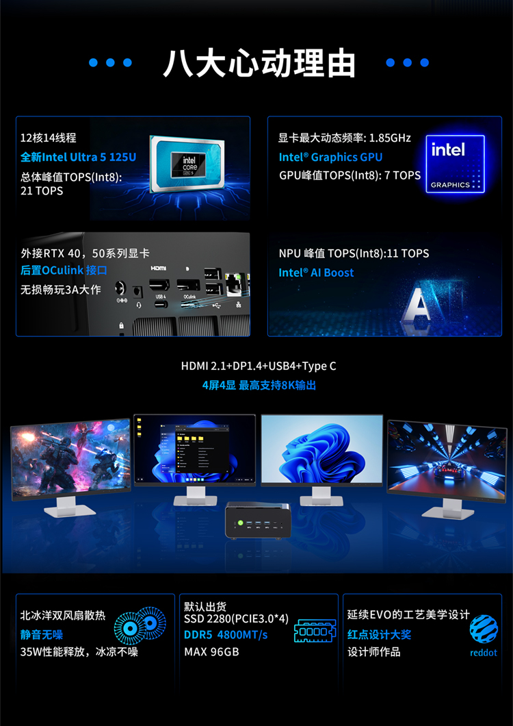 最大支持PCIe 4.0*4 M.2 2280 SSD*3 / MAX8TB*3=24TB