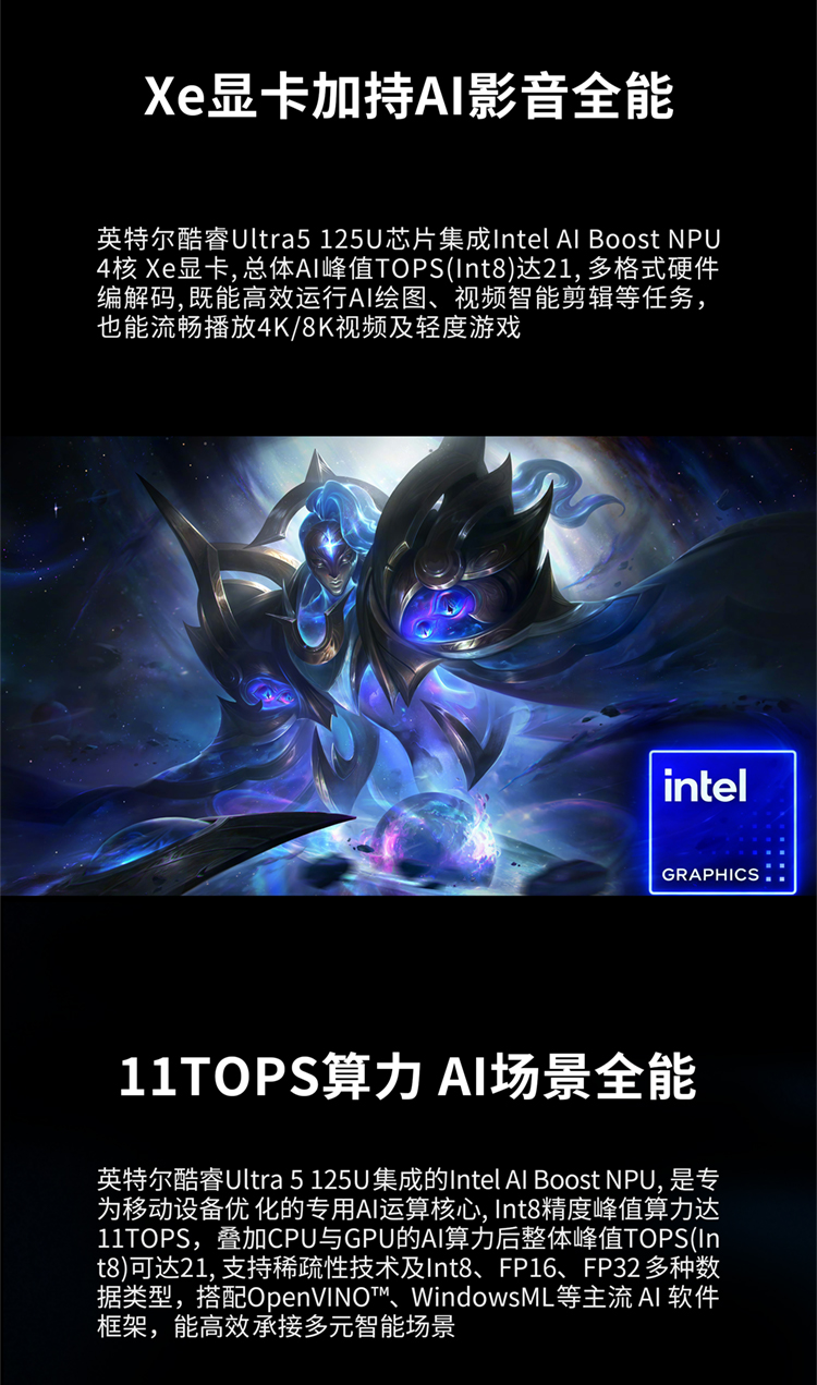 Intel® AI Boost,NPU 峰值 TOPS(Int8):11 TOPs