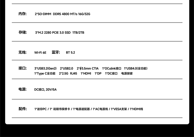 2*DDR5 5600 MT/S 最大内存支持96GB